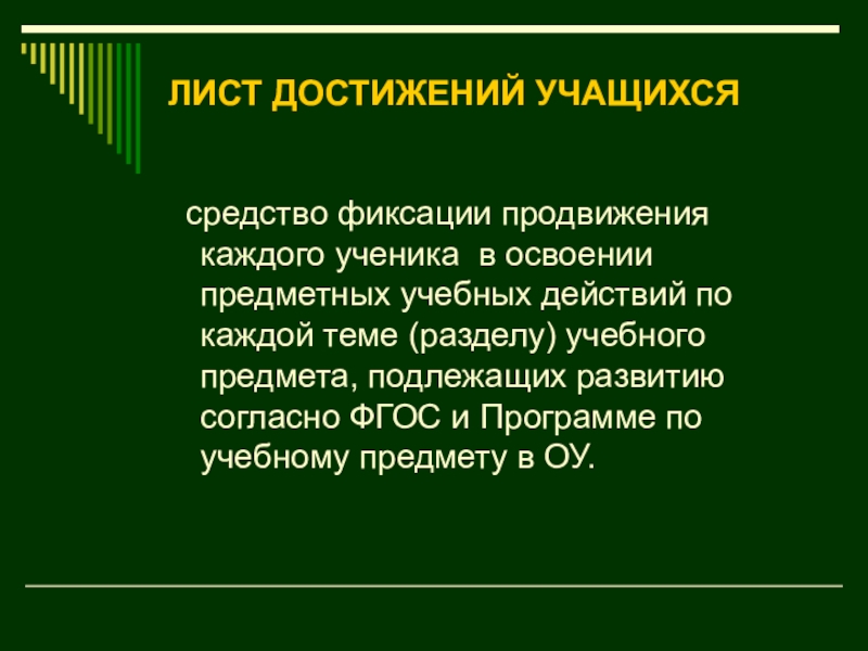 Слайд 26ЛИСТ ДОСТИЖЕНИЙ УЧАЩИХСЯ