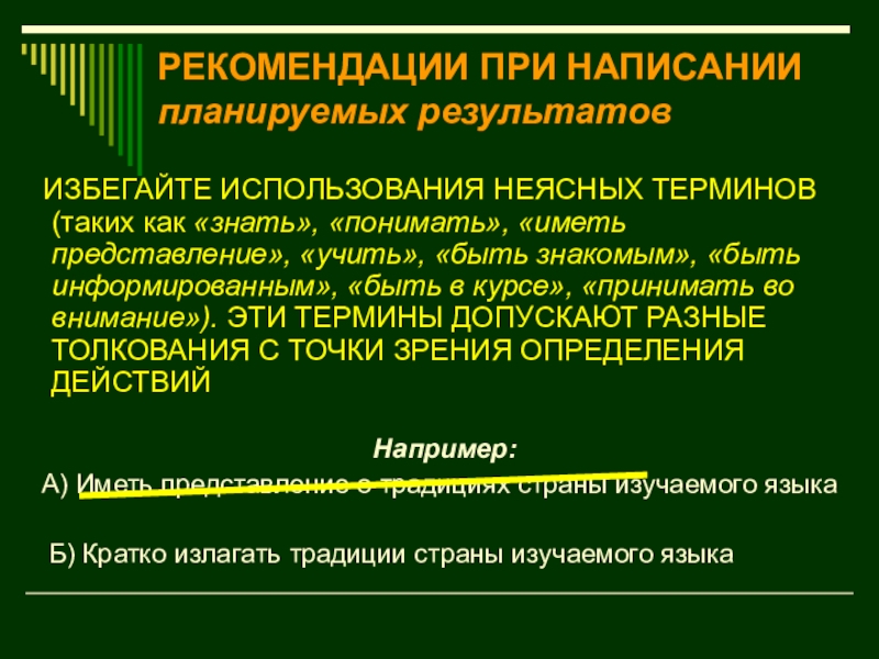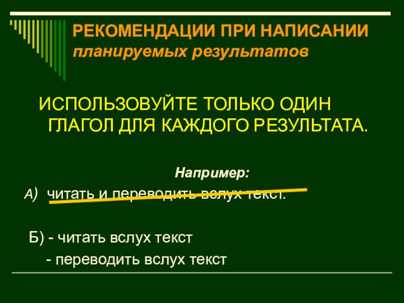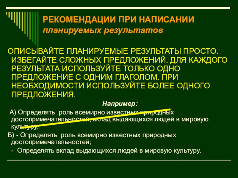 Слайд 18РЕКОМЕНДАЦИИ ПРИ НАПИСАНИИ планируемых результатов