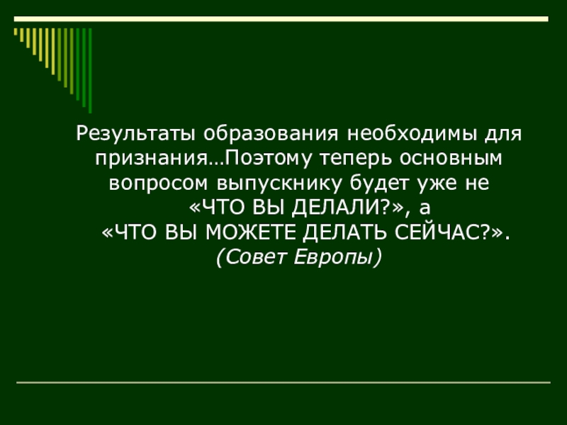 Слайд 12Результаты образования необходимы для признания…Поэтому теперь основным вопросом выпускнику будет уже