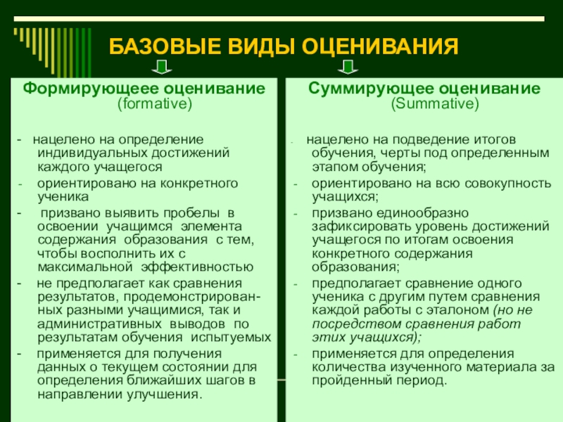 Слайд 23БАЗОВЫЕ ВИДЫ ОЦЕНИВАНИЯ