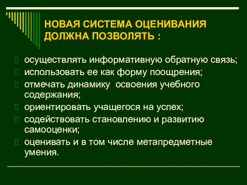 Слайд 28НОВАЯ СИСТЕМА ОЦЕНИВАНИЯ ДОЛЖНА ПОЗВОЛЯТЬ :
