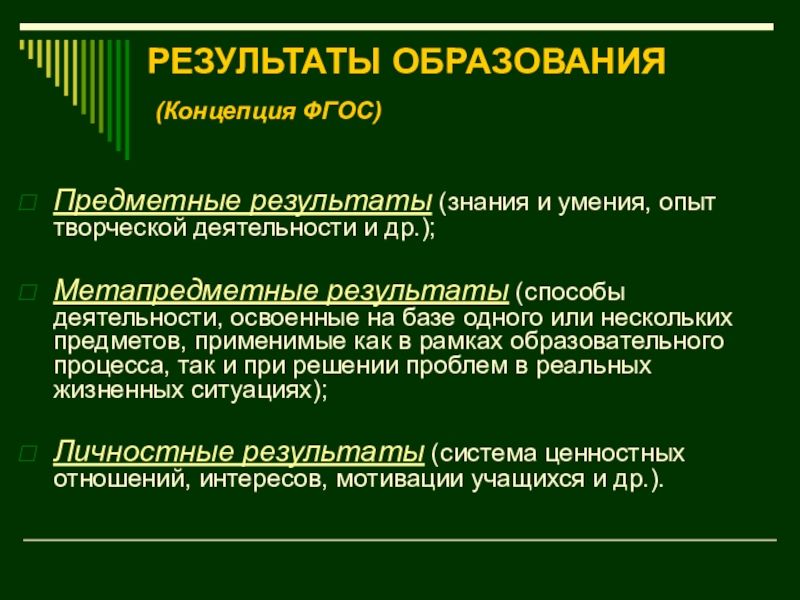 Слайд 9РЕЗУЛЬТАТЫ ОБРАЗОВАНИЯ