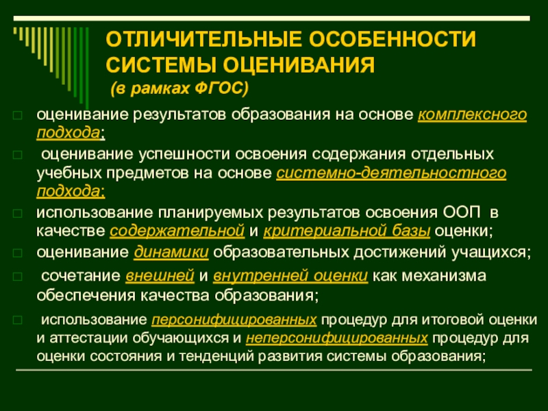 Слайд 8ОТЛИЧИТЕЛЬНЫЕ ОСОБЕННОСТИ СИСТЕМЫ ОЦЕНКИ