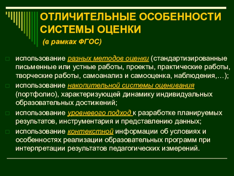 Слайд 7ОТЛИЧИТЕЛЬНЫЕ ОСОБЕННОСТИ СИСТЕМЫ ОЦЕНИВАНИЯ