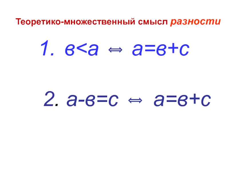 Теоретико-множественный смысл разности 1. а+в=n(АUВ), где n(А)=а, n(В)=в,