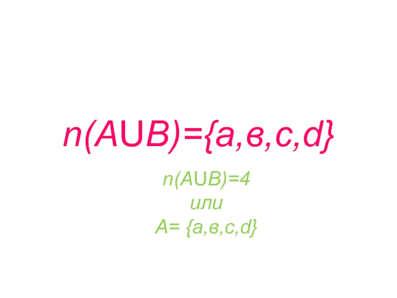 n(АUВ)={а,в,с,d} n(АUВ)=4  или А= {а,в,с,d}