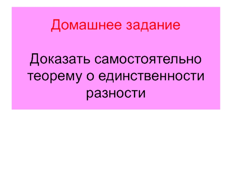 Домашнее задание  Доказать самостоятельно теорему о единственности разности