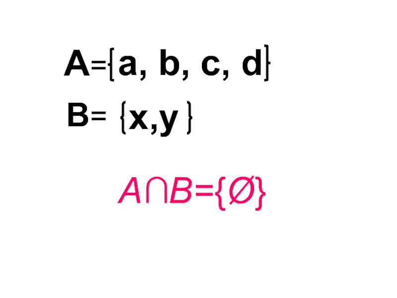 А∩В={Ǿ}А=a, b, c, dB=x,y