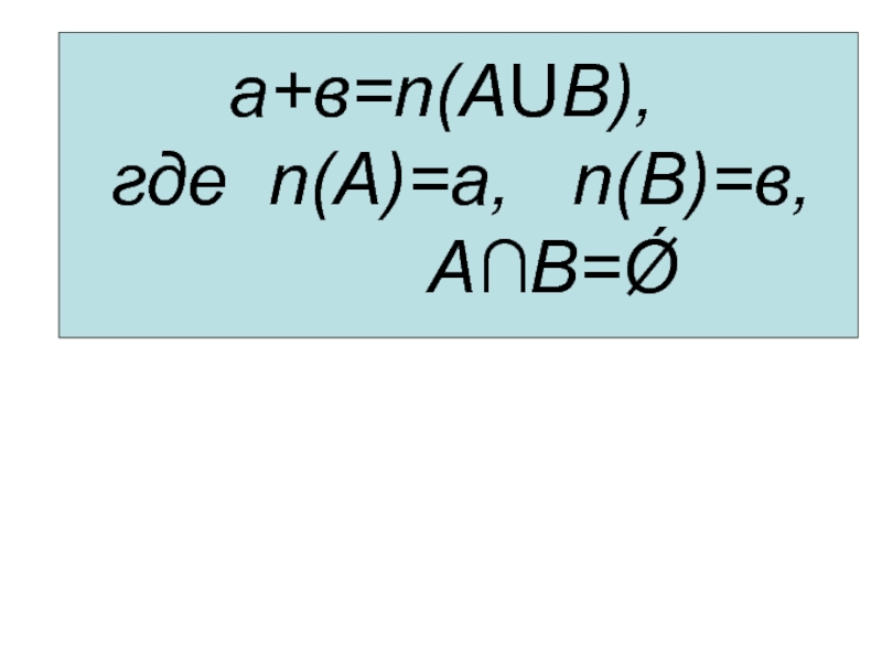 а+в=n(АUВ),  где n(А)=а,  n(В)=в,        А∩В=Ǿ