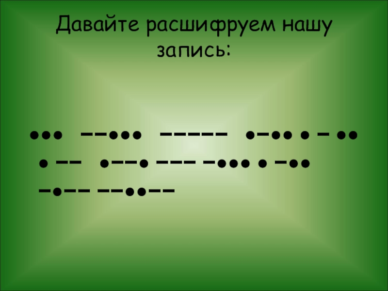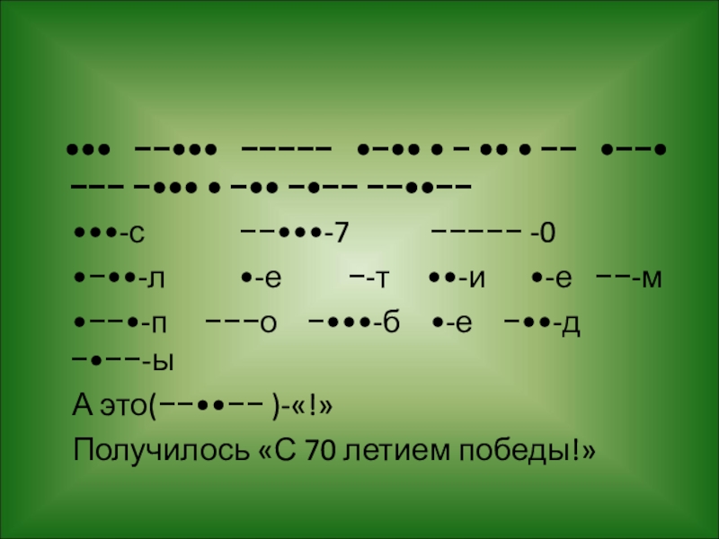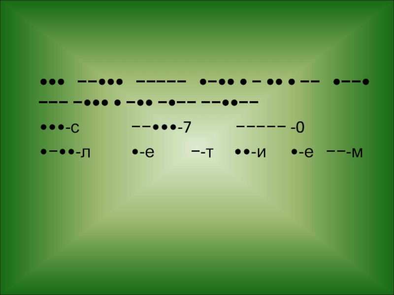 Слайд 18 ••• −−••• −−−−− •−•• • −