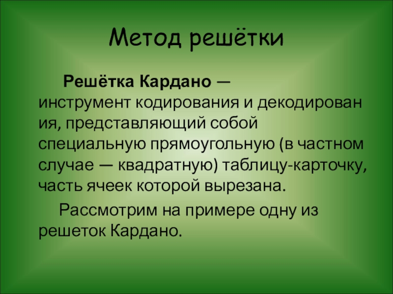 Решётка Кардано — инструмент кодирования и декодирования, представляющий собой