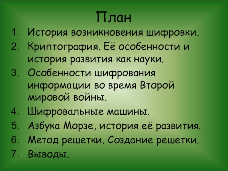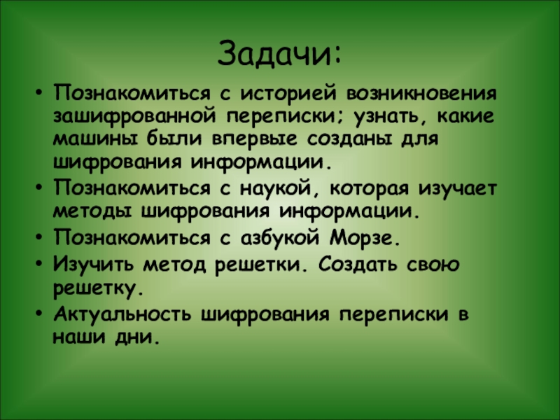 Познакомиться с историей возникновения зашифрованной переписки; узнать, какие машины были впервые