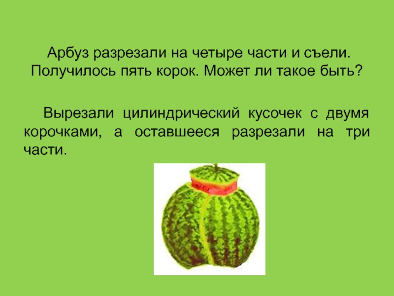 Вырезали цилиндрический кусочек с двумя корочками, а оставшееся разрезали на три части.