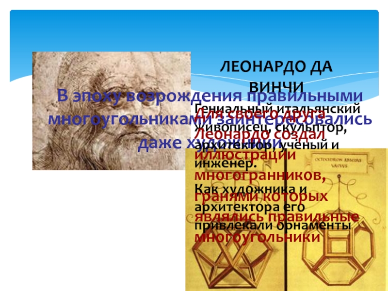 Для своего друга Леонардо создал иллюстрации многогранников, гранями которых являлись правильные многоугольники