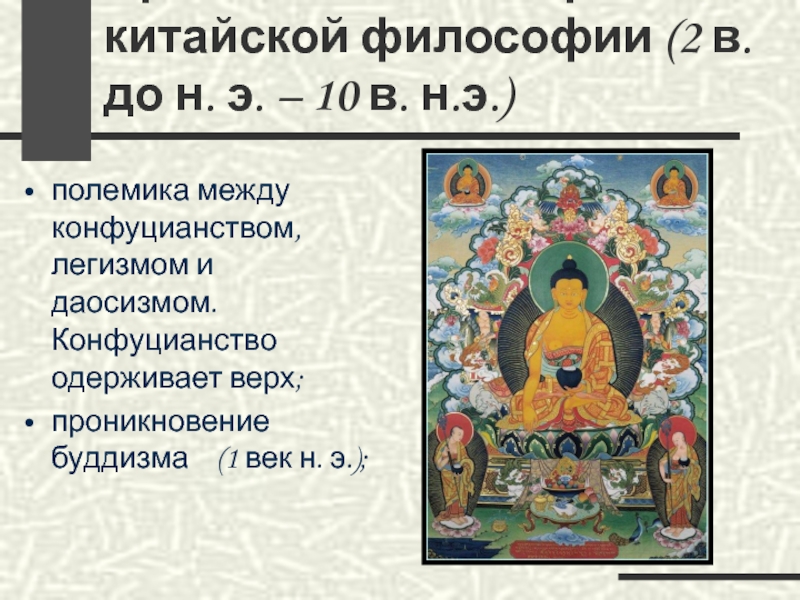 полемика между конфуцианством, легизмом и даосизмом. Конфуцианство одерживает верх;