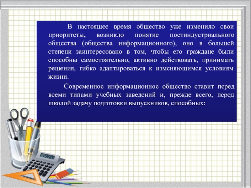 на практике для решения разнообразных возникающих проблем, чтобы на протяжении всей жизни иметь возможность найти в ней свое место;