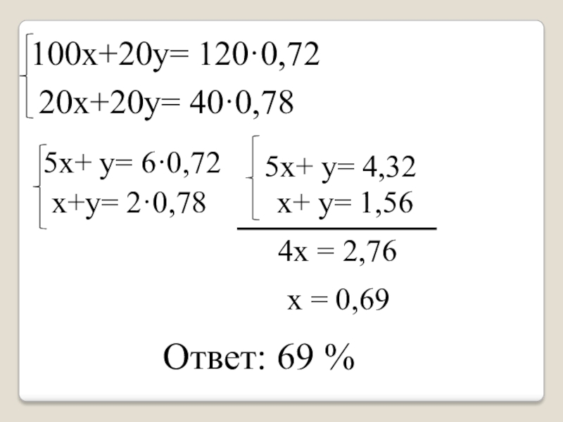 100х+20у= 120·0,72