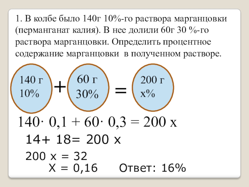 0,1х + (200 - х)· 0,3 = 200 ·0,16