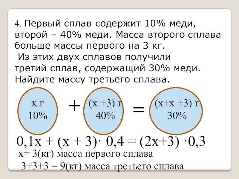 х= 3(кг) масса первого сплава