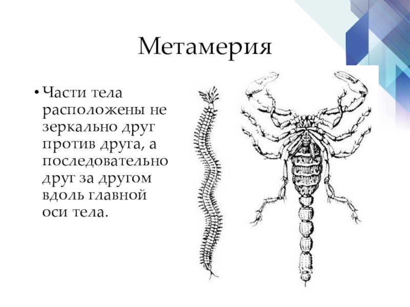 Части тела расположены не зеркально друг против друга, а последовательно друг