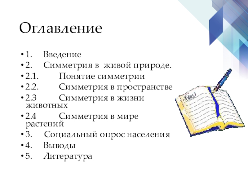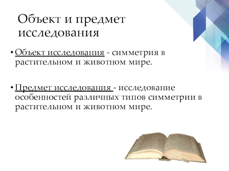 Предмет исследования - исследование особенностей различных типов симметрии в растительном и животном мире.