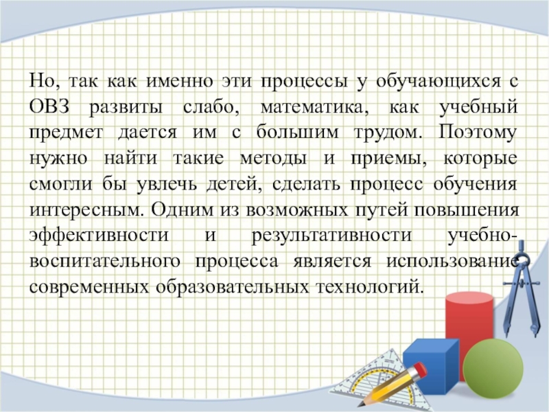 Слайд 3Но, так как именно эти процессы у обучающихся с ОВЗ развиты
