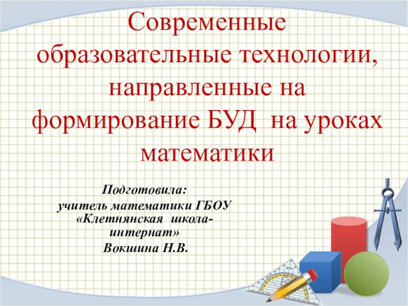 Слайд 1Современные образовательные технологии,направленные на формирование БУД на уроках математики