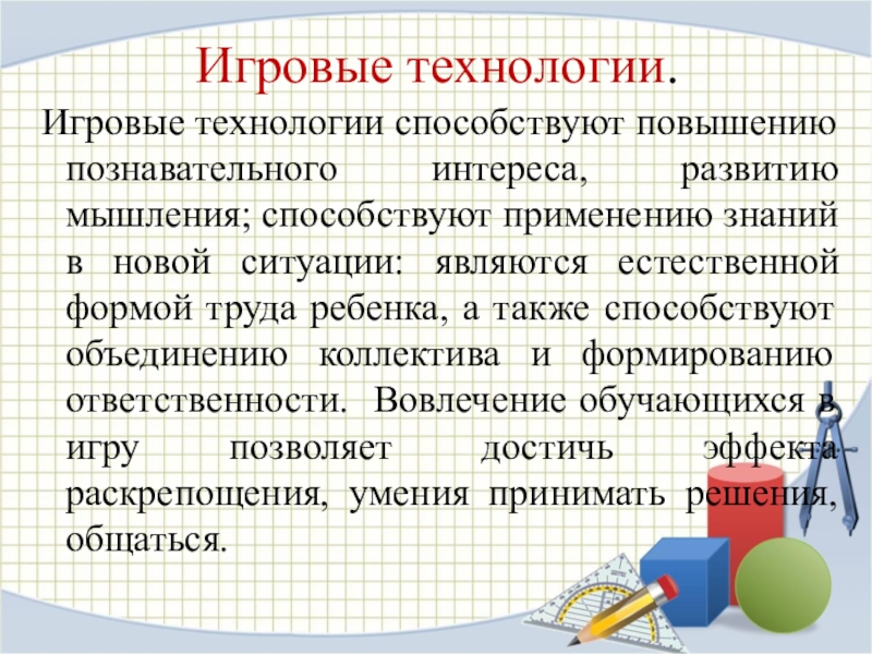 Игровые технологии способствуют повышению познавательного интереса, развитию мышления; способствуют