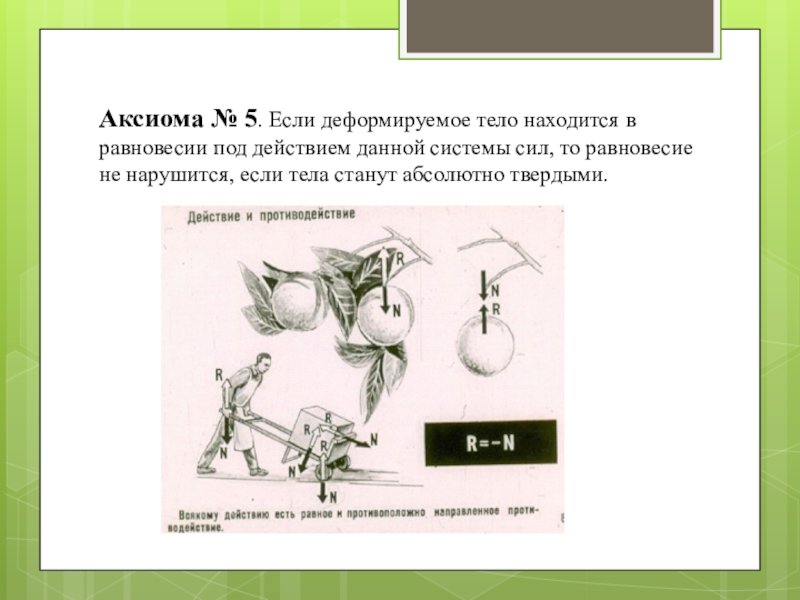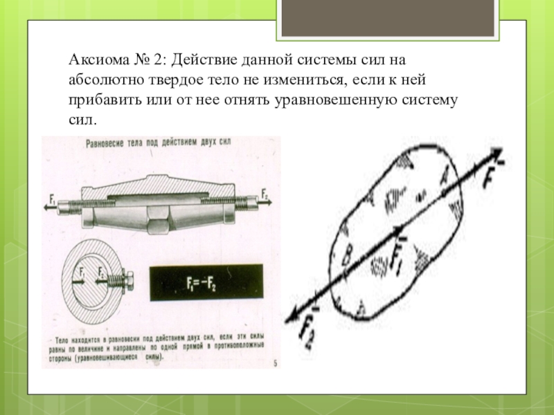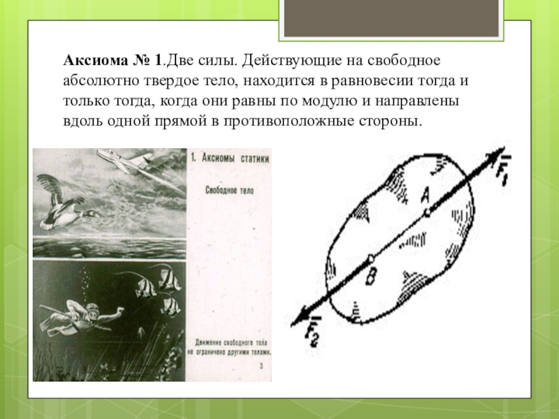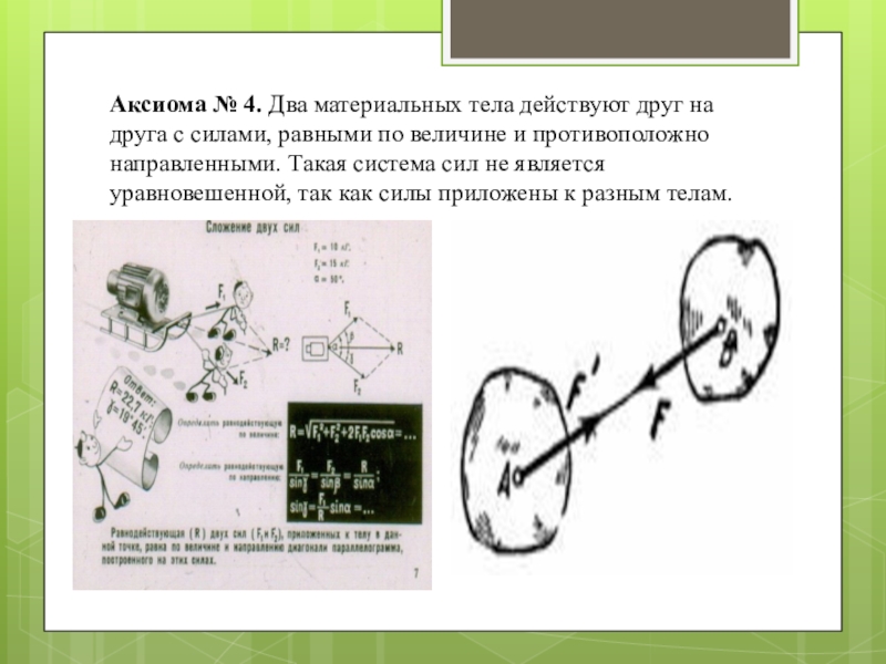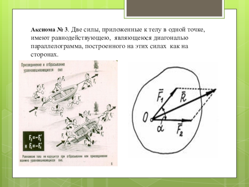 Сила – величина векторная так как она определяется тремя элементами: численным значением, значением, направлением и точкой приложения.