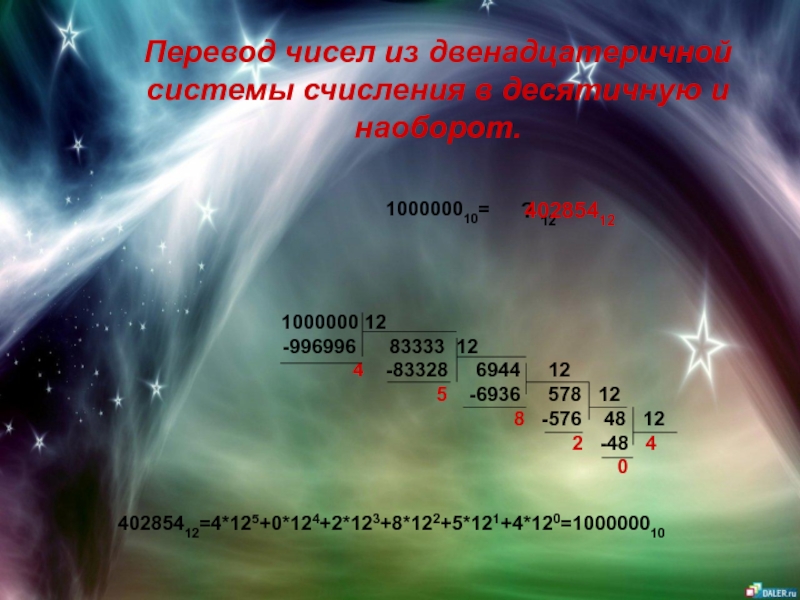 40285412=4*125+0*124+2*123+8*122+5*121+4*120=100000010