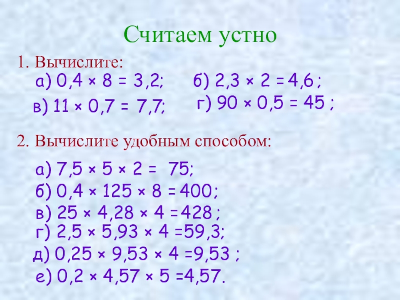 д) 0,25 × 9,53 × 4 = ;