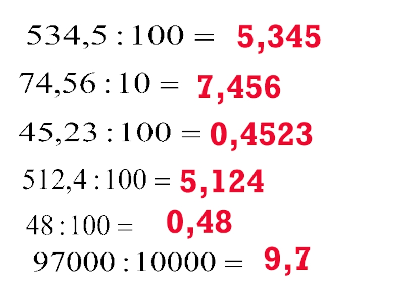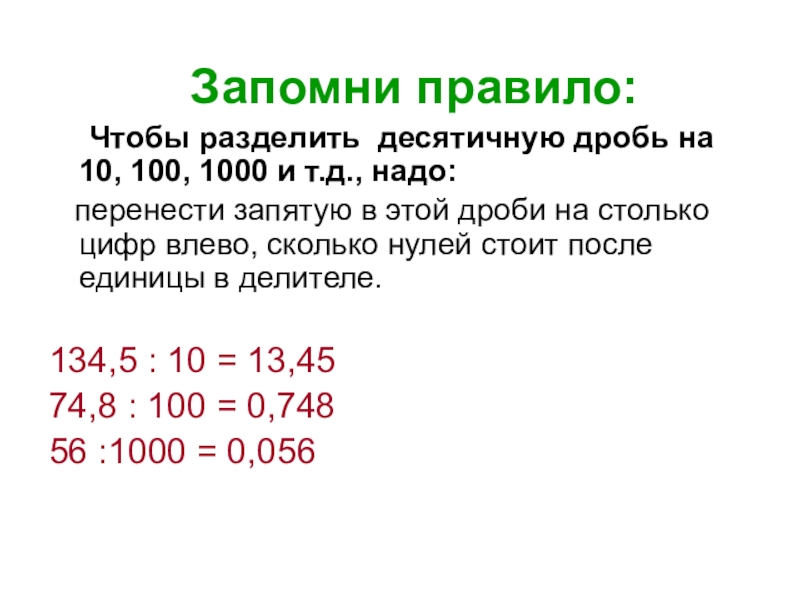 умения и навыки деления десятичных дробей на 10, 100, 1000 и т.д.