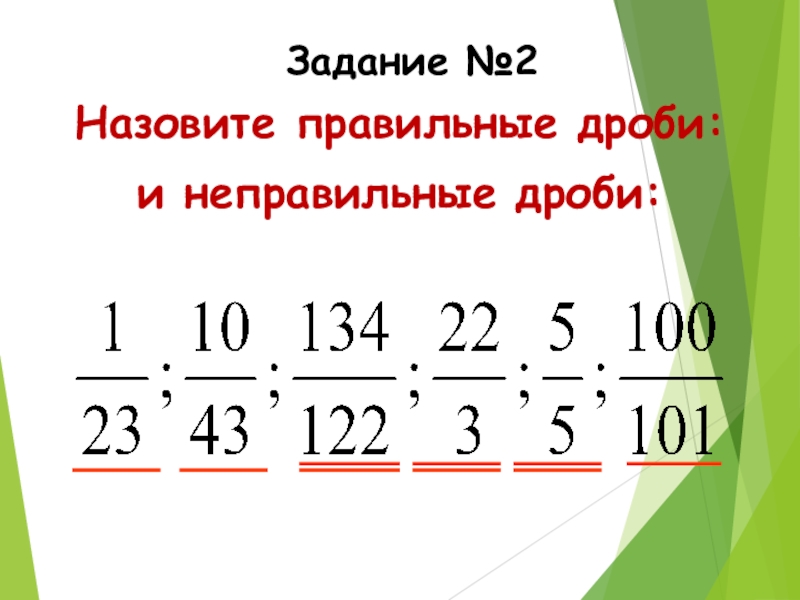 Задание №2 Назовите правильные дроби:и неправильные дроби: