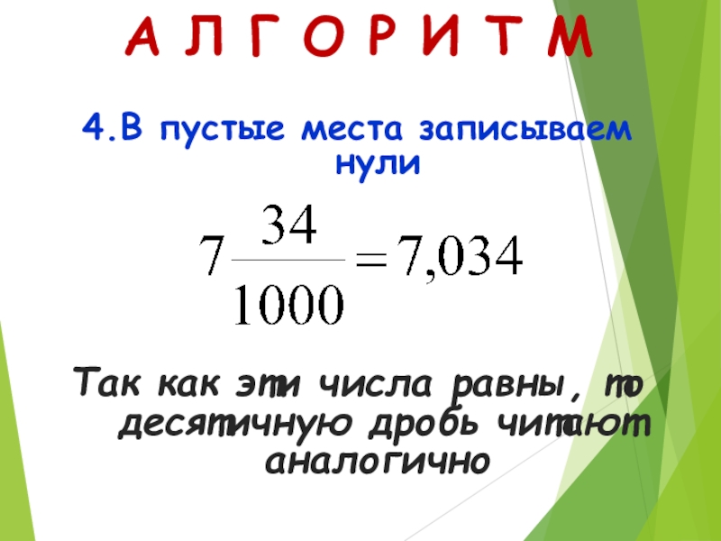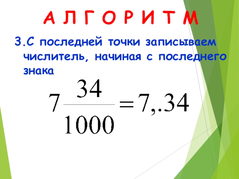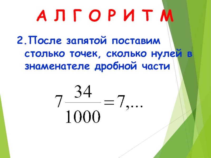 А Л Г О Р И Т М2.После запятой поставим столько точек, сколько нулей в знаменателе дробной