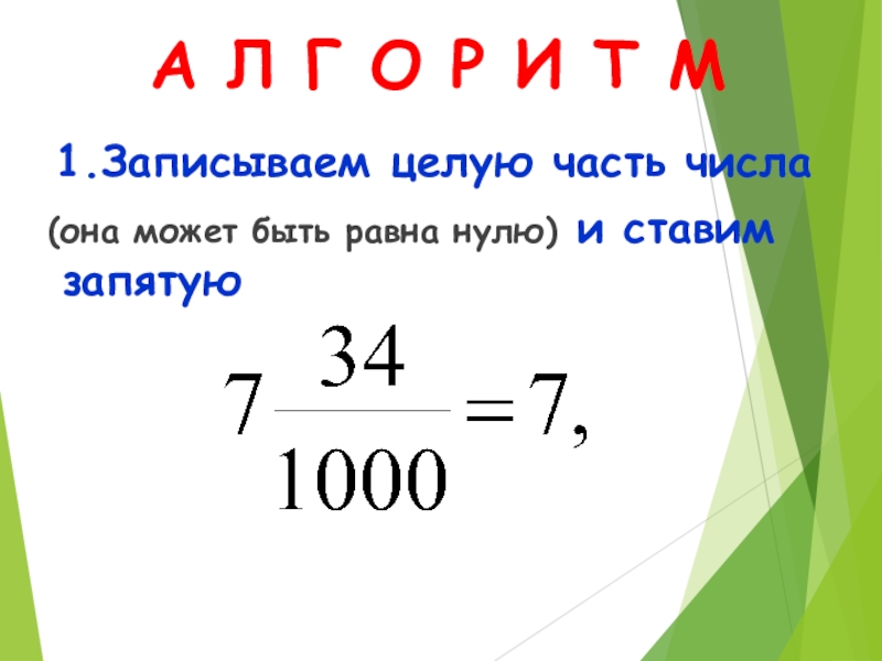 А Л Г О Р И Т М1.Записываем целую часть числа (она может быть равна нулю) и