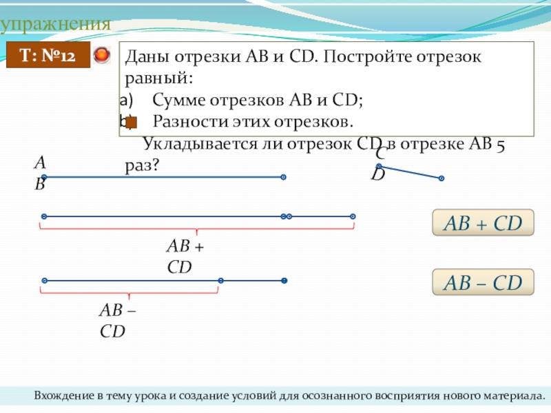Укладывается ли отрезок CD в отрезке АВ 5 раз?