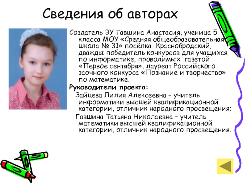 Это сайт презентаций, где можно хранить и обмениваться своими презентациями, докладами, проектами, шаблонами в формате PowerPoint с другими пользователями. Мы помогаем школьникам, студентам, учителям, преподавателям хранить и обмениваться учебными материалами.