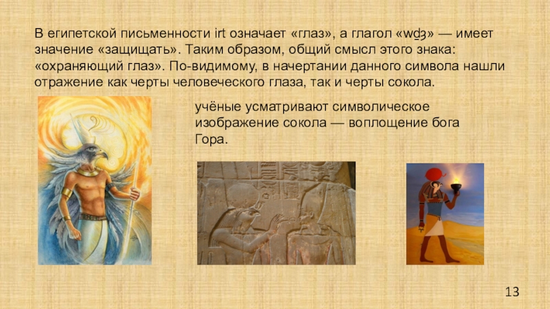 учёные усматривают символическое изображение сокола — воплощение бога Гора.