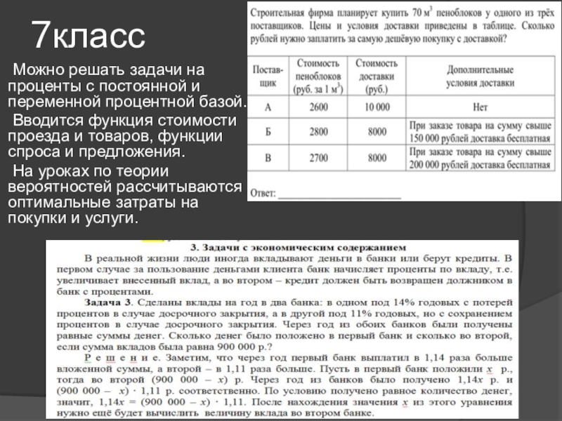 Можно решать задачи на проценты с постоянной и переменной процентной