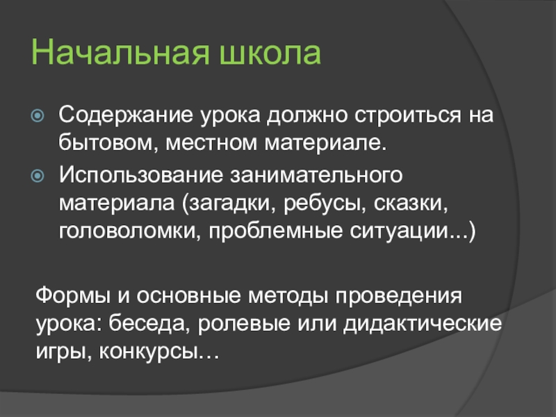 Формы и основные методы проведения урока: беседа, ролевые или дидактические игры, конкурсы…