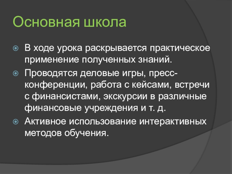 пресс-конференции, работа с кейсами, встречи с финансистами, экскурсии в различные финансовые учреждения и т. д.
