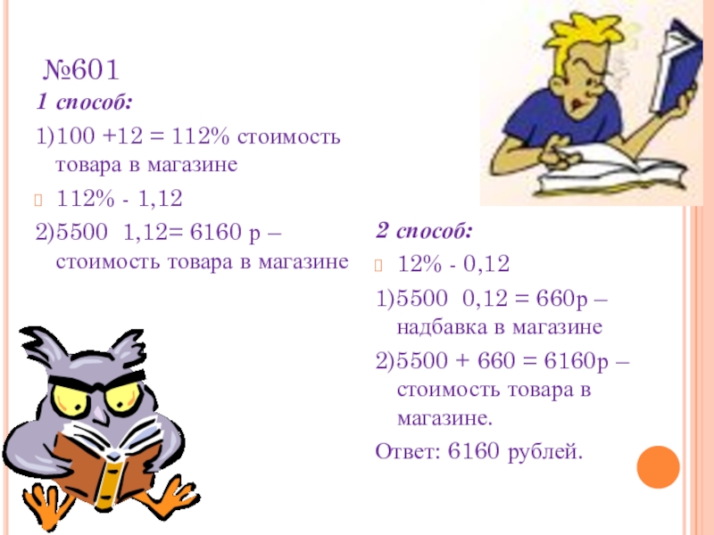 2)5500 + 660 = 6160р – стоимость товара в магазине.