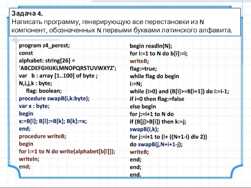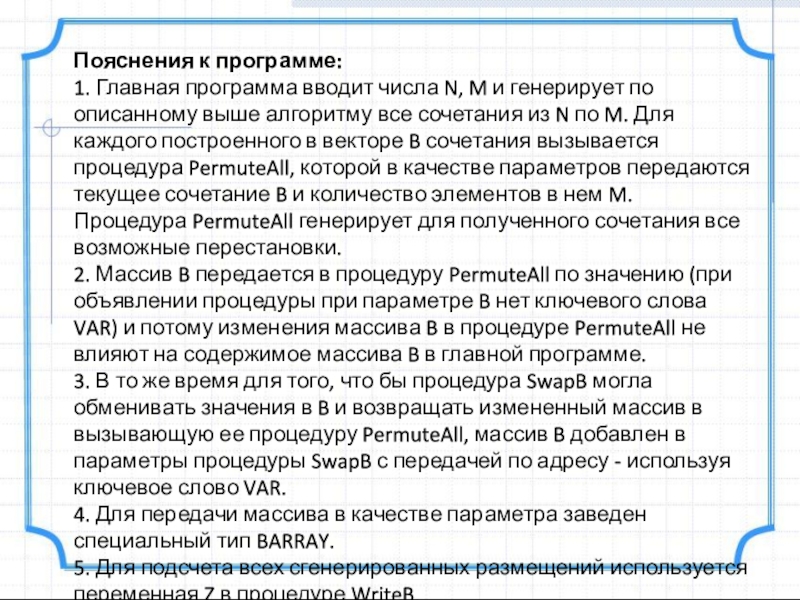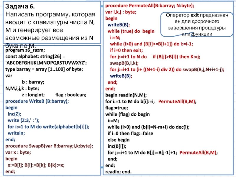 for i:=1 to M do b[i]:=i; PermuteAll(B,M);