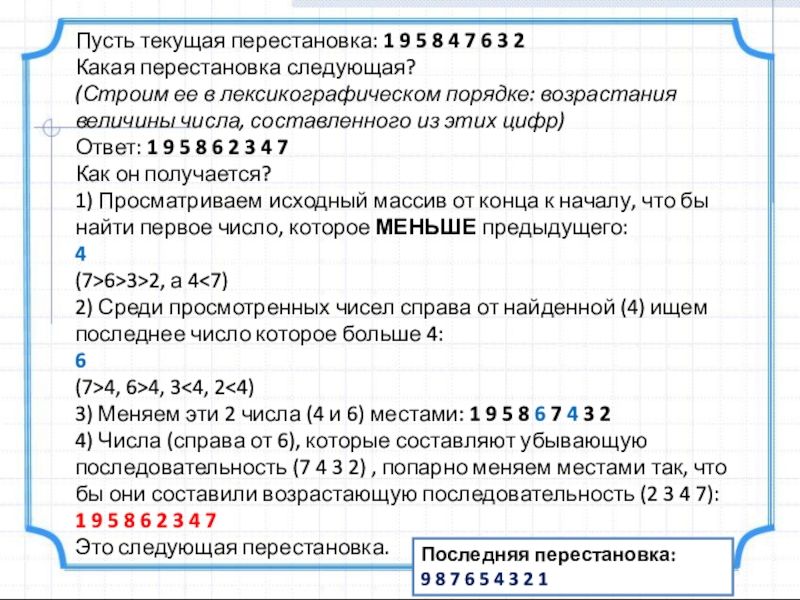 1-ая перестановка: 1 2 3 4 5 6 7 8 9