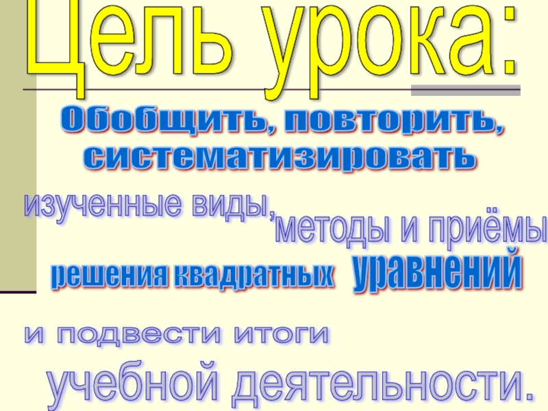 3. Способствовать развитию умения видеть и применять изученные способы решения квадратных уравнений в нестандартных ситуациях.