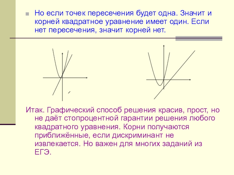 Слайд 26Но если точек пересечения будет одна. Значит и корней квадратное уравнение