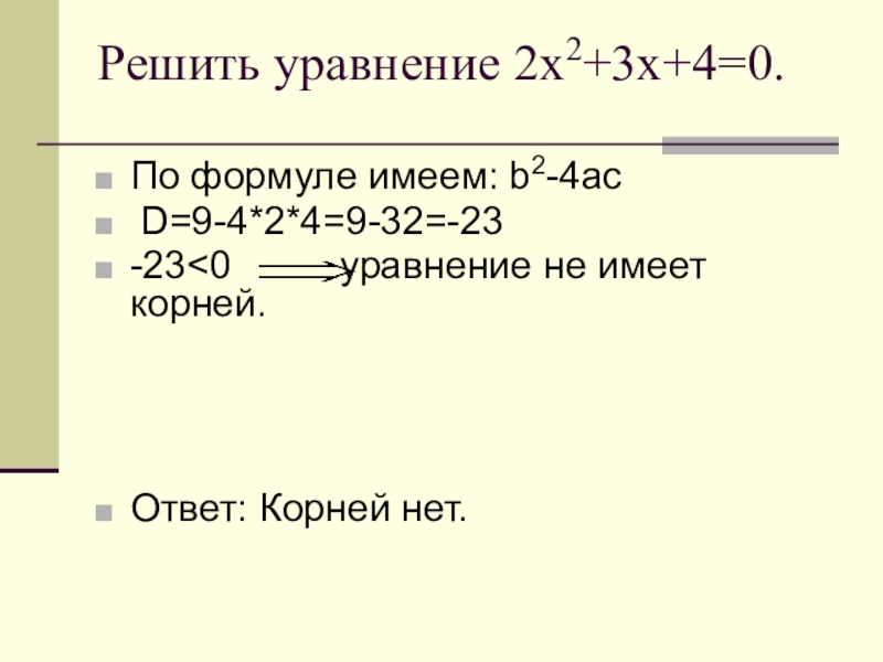 2х2+3х+4=0 нет корней полное