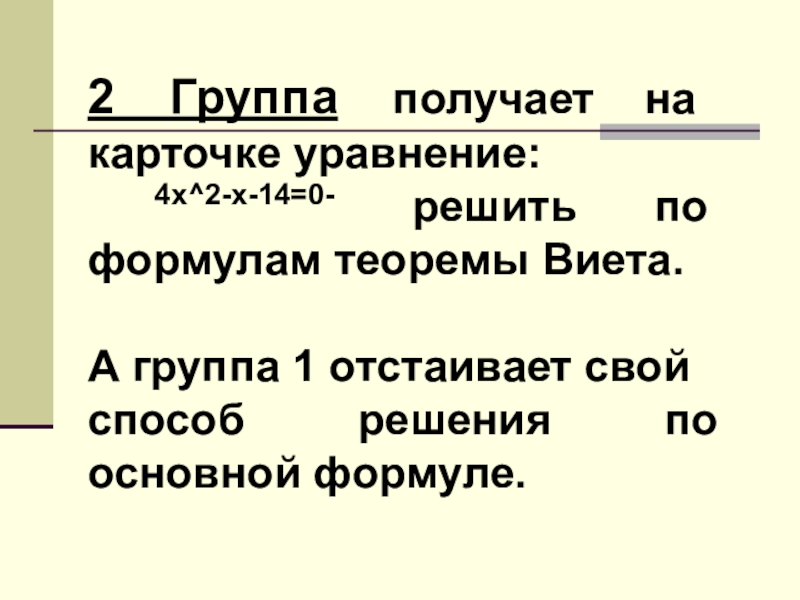 Слайд 292 Группа получает на карточке уравнение: