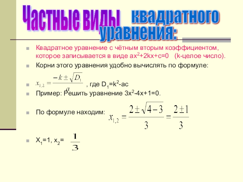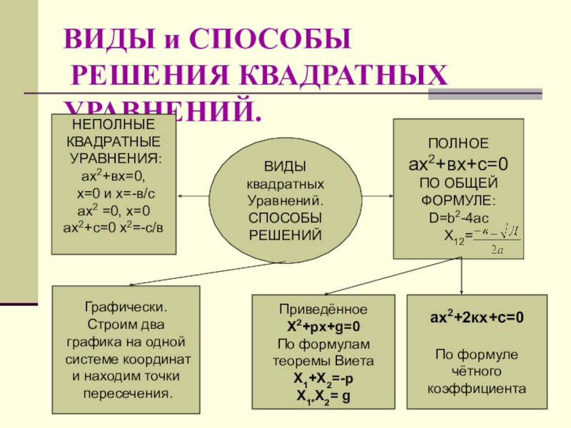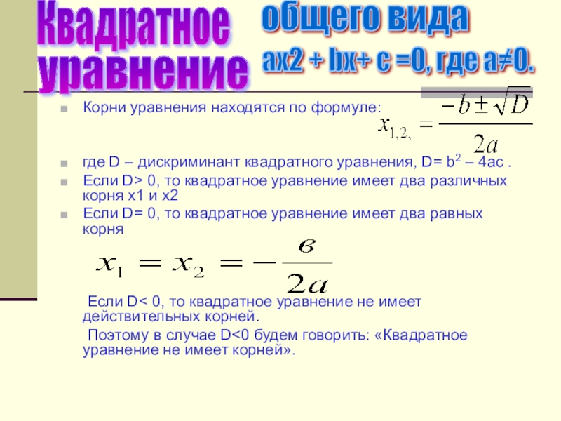 Формулы решения квадратных уравнений