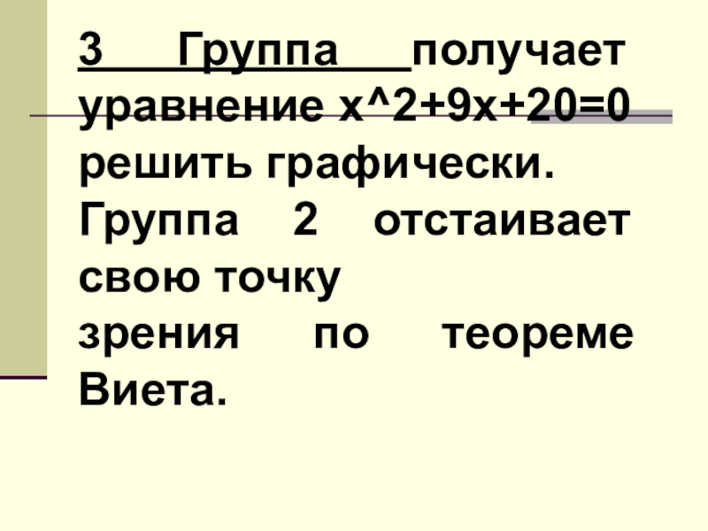 Слайд 303 Группа получает уравнение х^2+9х+20=0